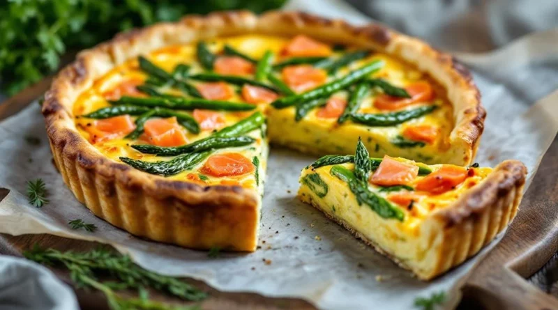 Découvrez la recette simple et gourmande de la quiche aux asperges et au saumon